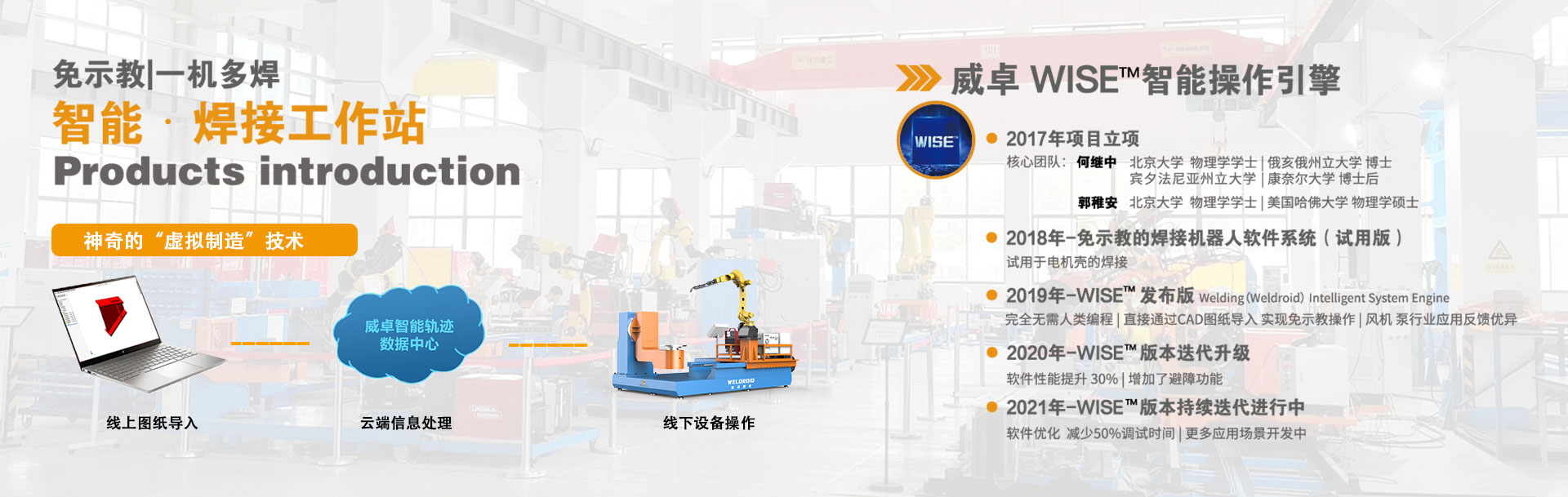 無錫威卓智能機器人有限公司成立于2017年,是無錫市政府引進的科技領軍型高新技術企業(yè),公司研發(fā)團隊80余人,我們堅持自主創(chuàng)新,利用自主開發(fā)的虛擬制造技術對傳統(tǒng)焊接行業(yè)進行升級改造。 公司主推的工業(yè)風機系列-智能焊接工作站產品,具有免示教、實時跟蹤、簡易工裝、傻瓜式操作等優(yōu)點,真正幫助企業(yè)解決了招焊工難,用工成本高,焊接質量不穩(wěn)定等問題。